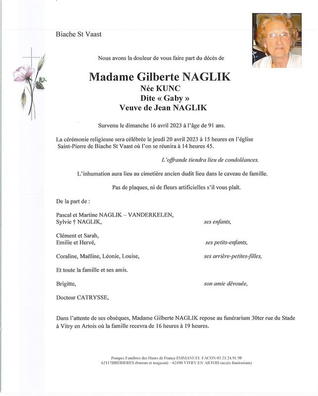 Madame Gilberte NAGLIK née KUNC