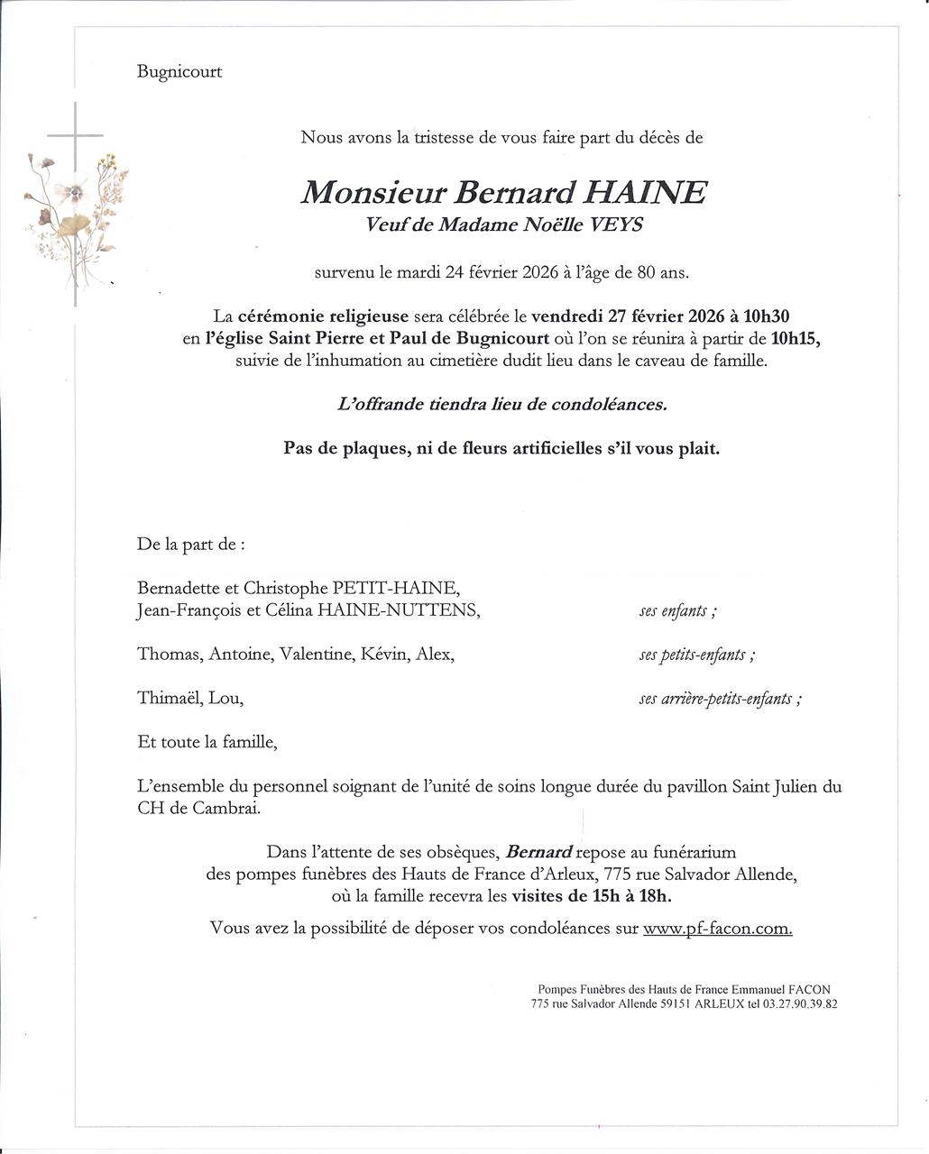 Décédé à Cambrai (59400, France) le mardi 24 février 2026 à l'âge de 80 ans