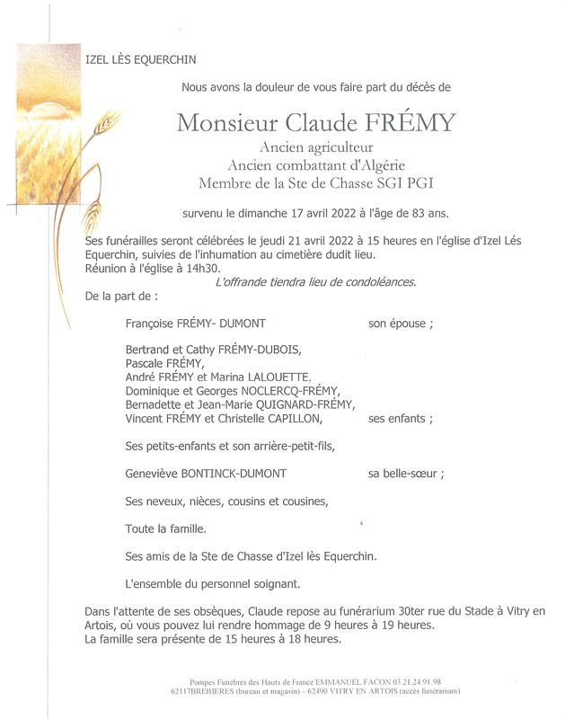 Monsieur CLAUDE FREMY