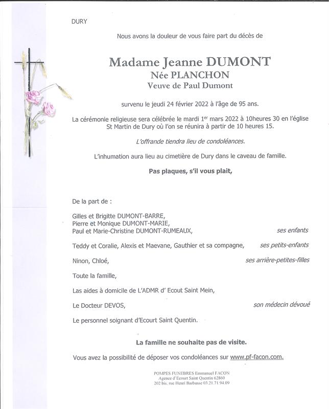 Madame Jeanne DUMONT née PLANCHON