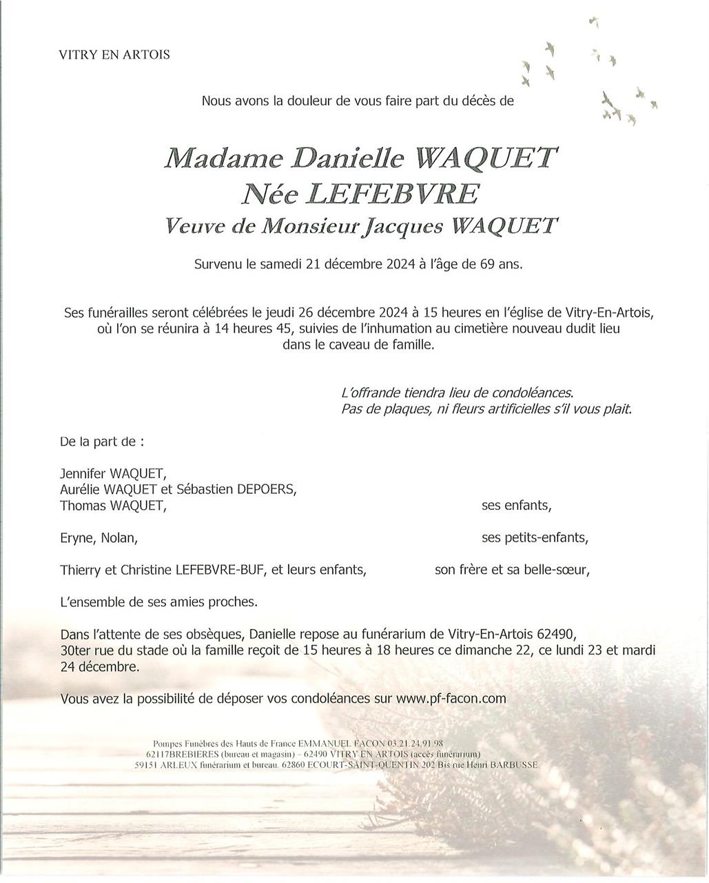 Décédée à Vitry-en-Artois (62490, France) le samedi 21 décembre 2024 à l'âge de 69 ans