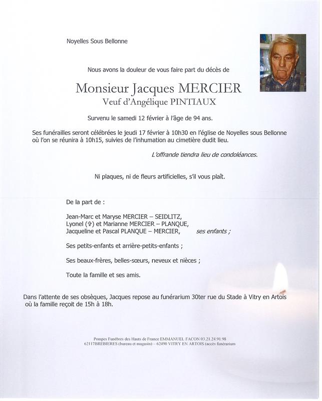 Décédé à Arras (62000, France) le samedi 12 février 2022 à l'âge de 94 ans