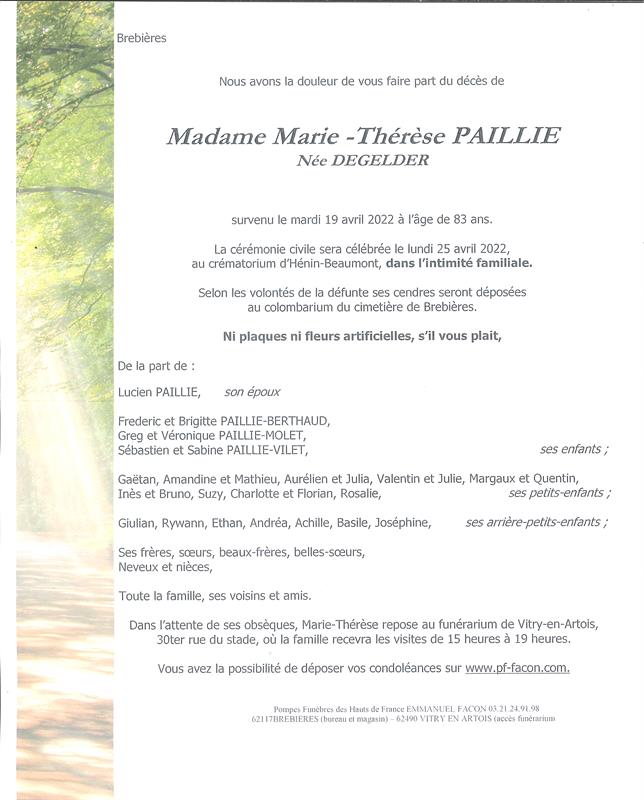 Madame Marie-Thérèse PAILLIE née DEGELDER