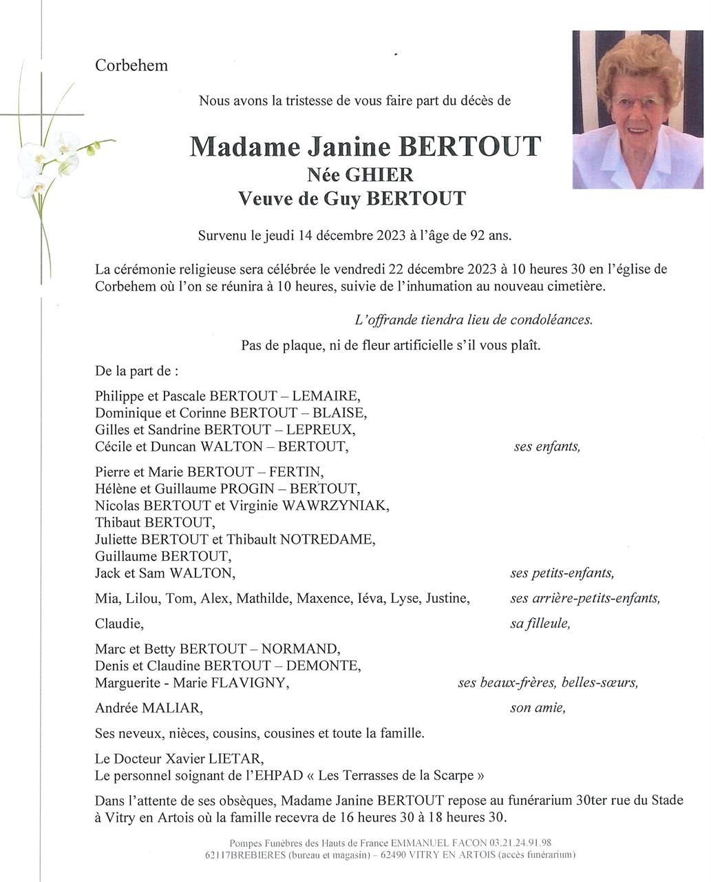 Décédée à Courchelettes (59552, France) le jeudi 14 décembre 2023 à l'âge de 92 ans