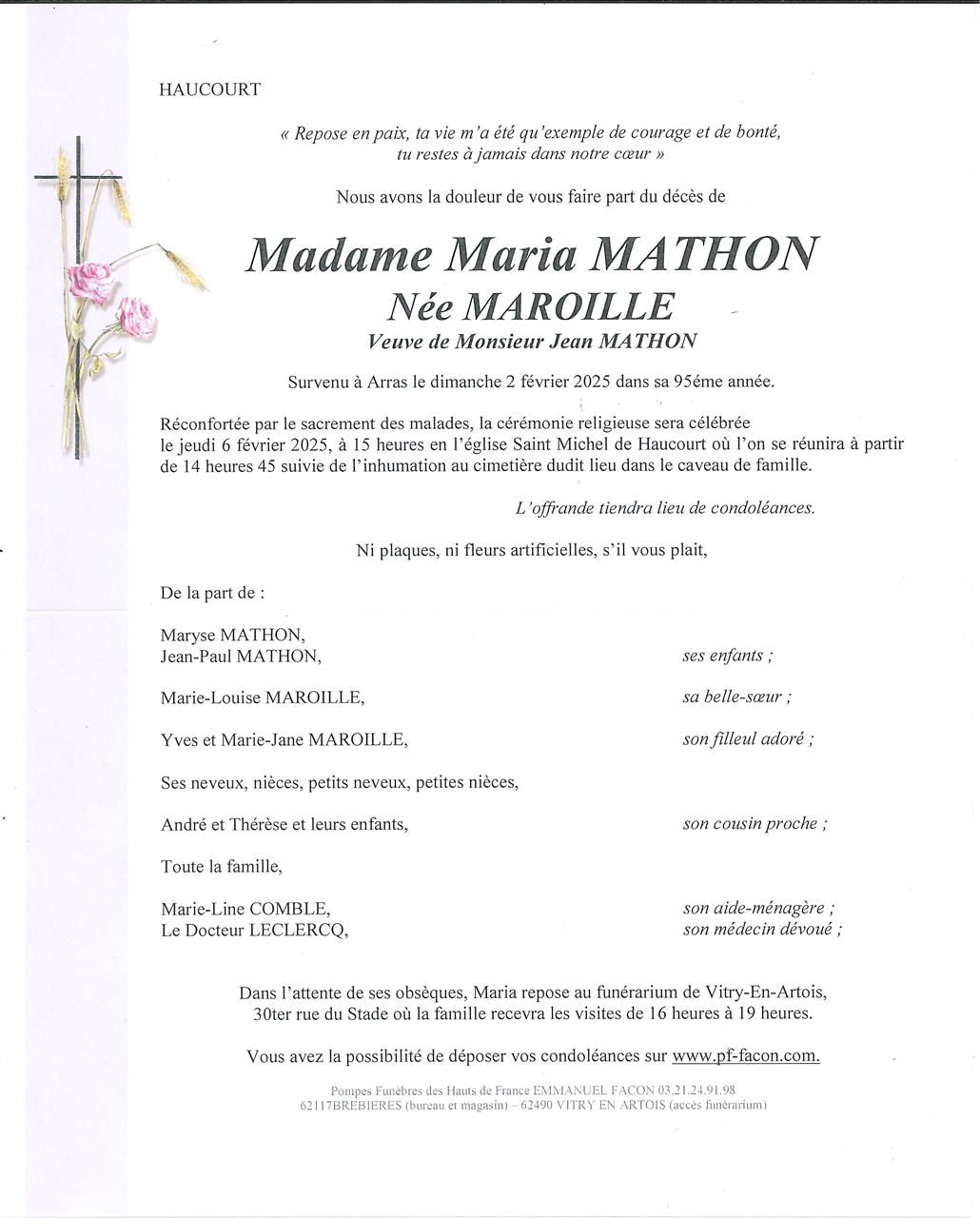 Madame Maria, Arthémise, Marie, Joseph MATHON née MAROILLE