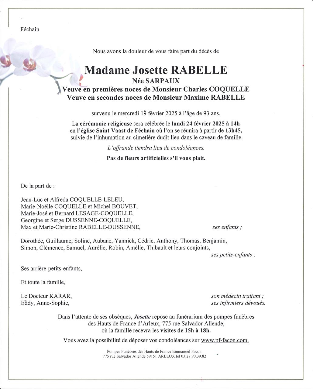 Madame Josette RABELLE née SARPAUX